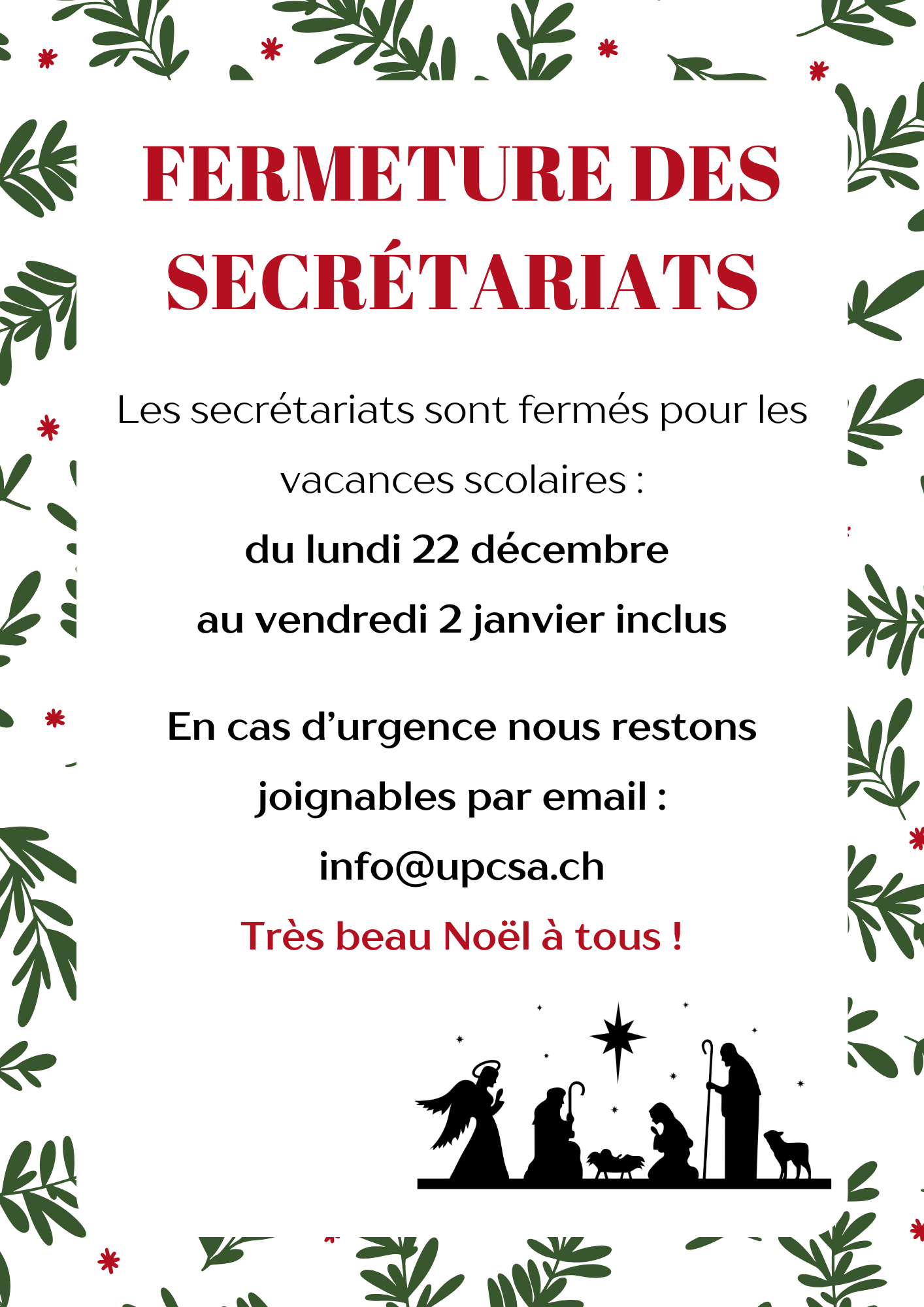 Fermeture des secrétariats